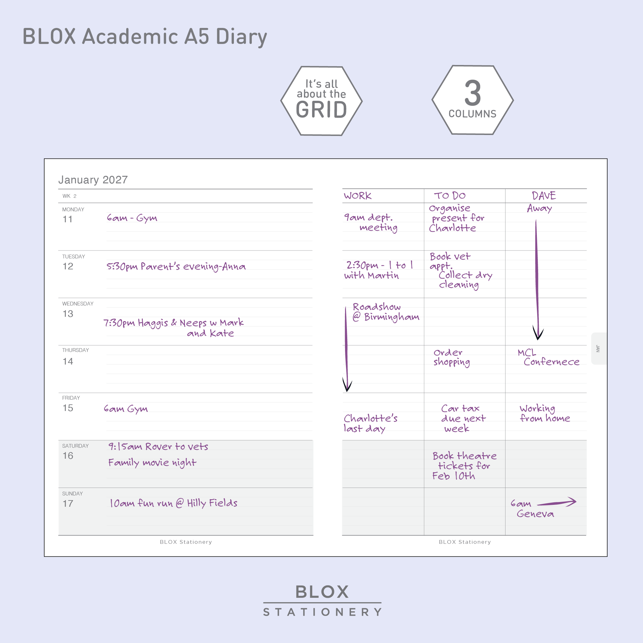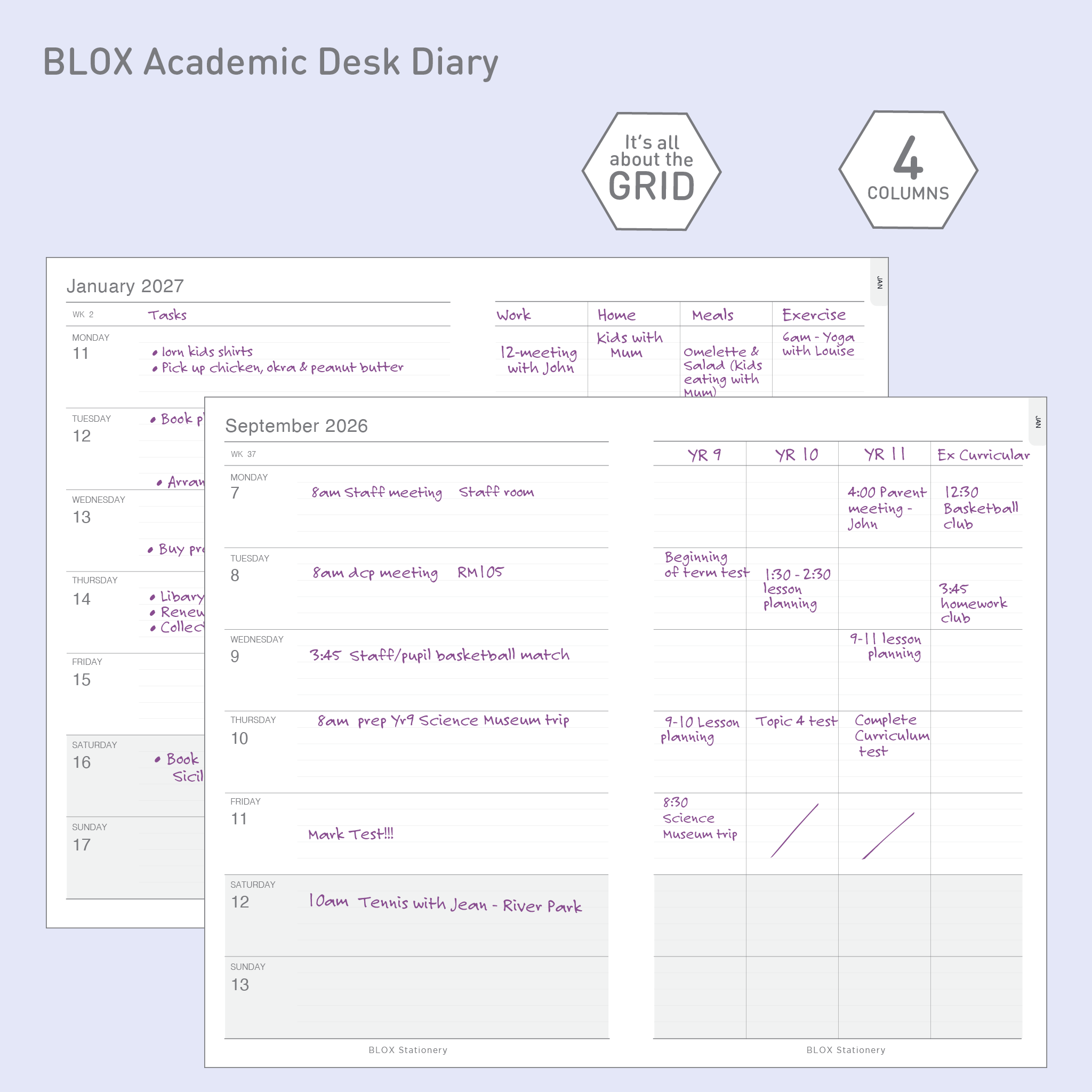 At Mum's Office, we know that managing busy family life can be chaotic. That’s why we’ve created our unique Week-to-View GRID layout – designed specifically to help regain control over family schedules. Our diaries, planners, and calendars offer a clear, organised approach to the week, ensuring you can easily track appointments, school events, family activities, and everything in between. No more missed appointments, overlapping events, or endless scribbles—just a streamlined, easy-to-read layout that brings clarity to the week.