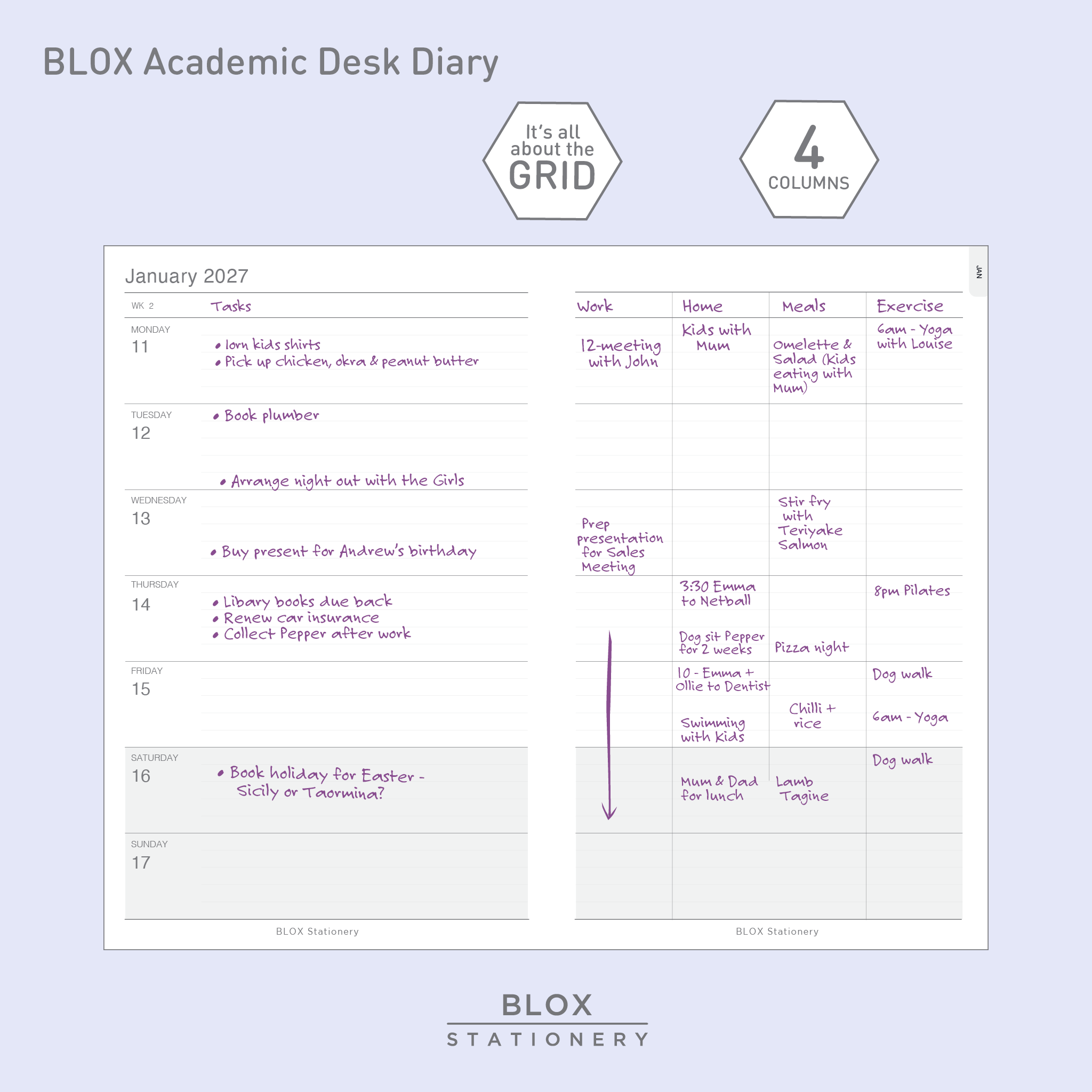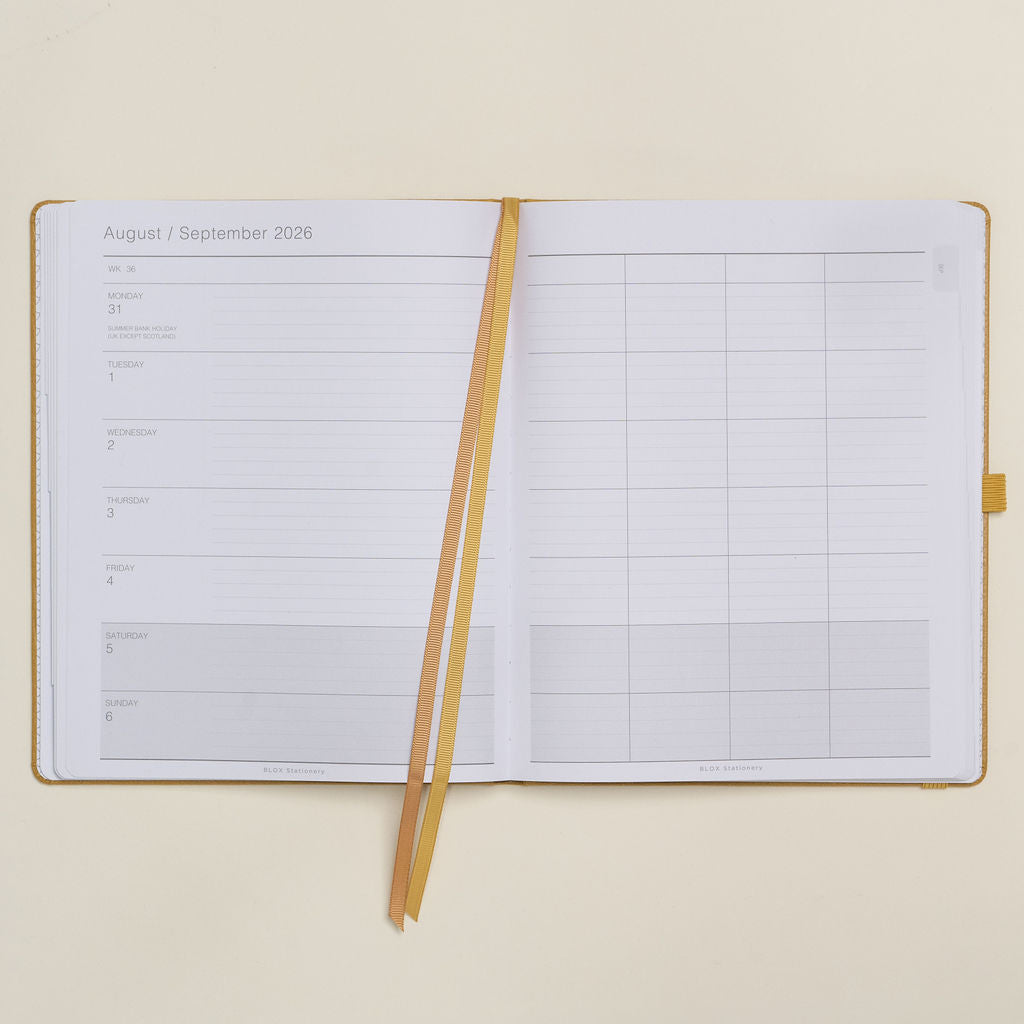 The BLOX Academic Desk Diary - your week, under control. Meetings, deadlines, projects, life — the Week-to-View with our 4-column GRID layout keeps everything in its place.