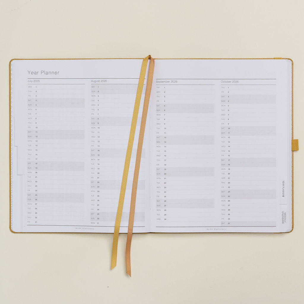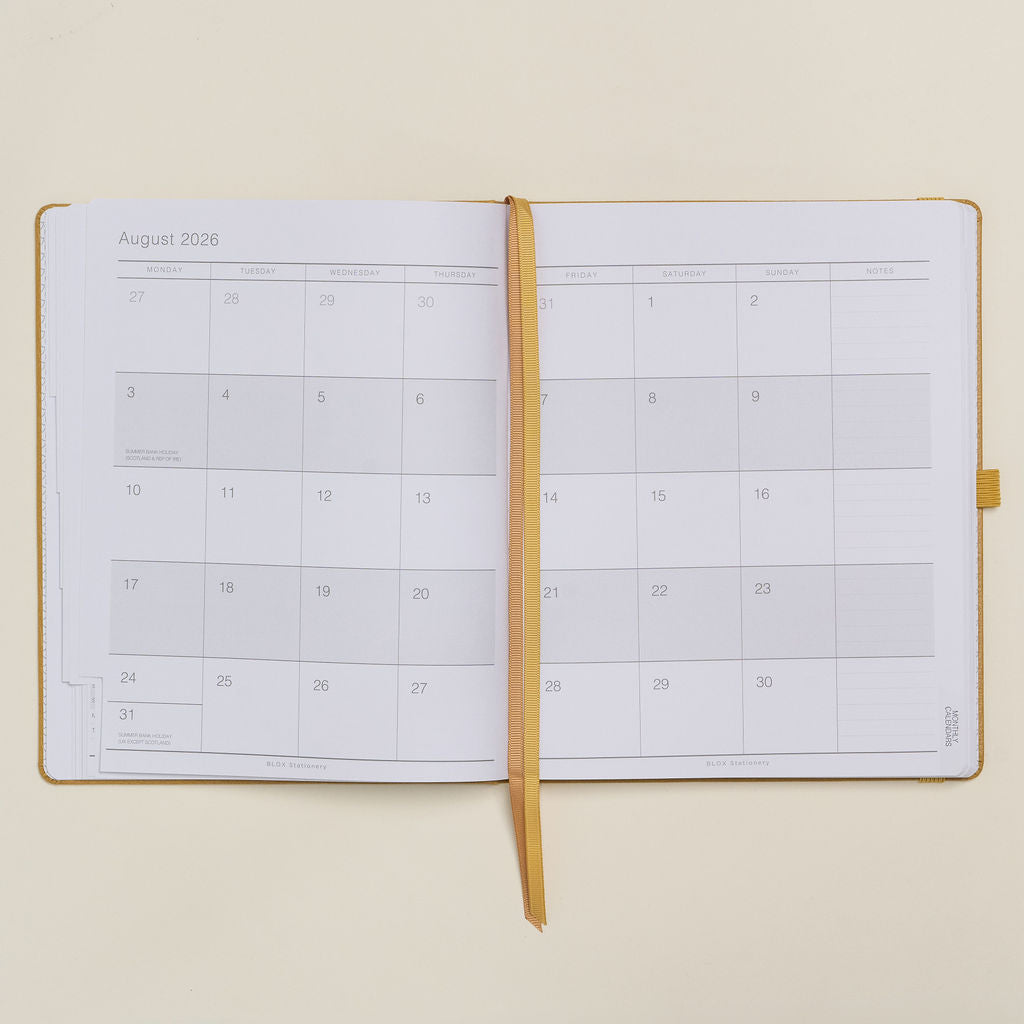 This desk diary is a LARGER version of the BLOX Academic A5 Diary published by our sister brand BLOX Stationery and the same size as our BIG Family School Year Diary. A large diary which will look fabulous on any desk or in any staff room. Particularly suited to professionals, the self-employed and teachers and the perfect gift for anyone who runs their life based on the Academic/School Year or wants a mid-year diary!